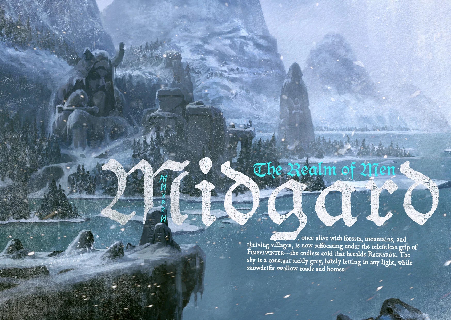 Dive deep into a world steeped in ancient legends, from the frostbitten realms of Jotunheim, the fiery chasms of Musphelheim and to the golden halls of Asgard.